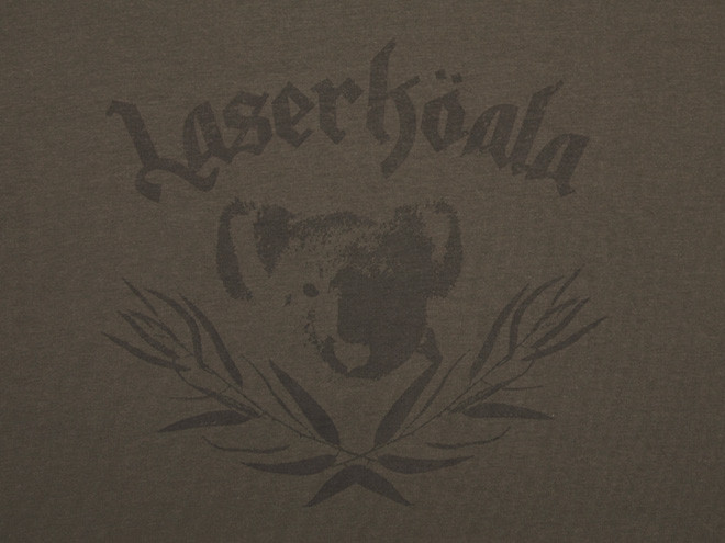 Motiv 3 „Laserköala“ auf grünem T-Shirt
