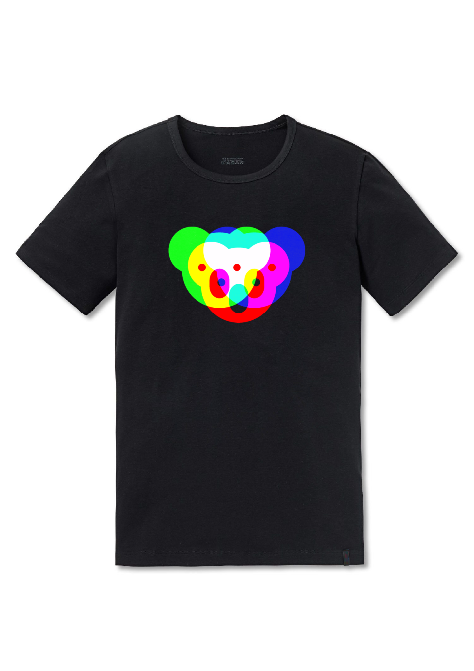Motiv „RGB Koala 2“ auf schwarzem T-Shirt