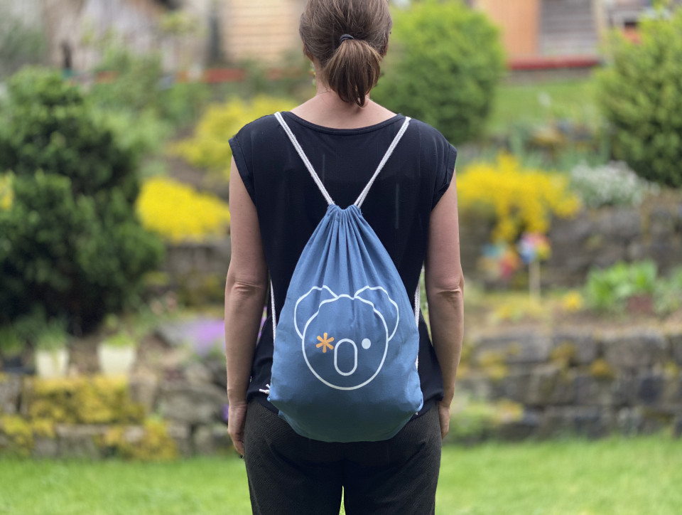 Motiv „Koalakopf“ auf Turnbeutel Indigo