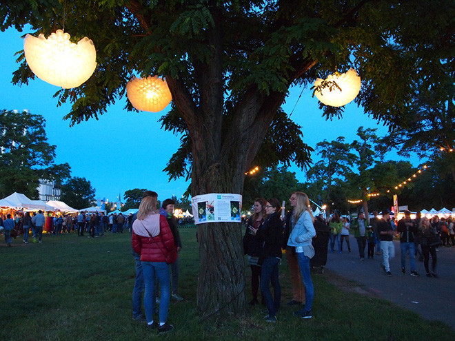 Nachdem die Lebenszeit der Becherbälle im letzten Jahr leider nur sehr kurz war haben wir uns entschieden noch ein Mal mit dem gleichen Material zu arbeiten, um die Installation einem größeren Publikum zugänglich zu machen. Dieses Jahr sind die Lampem stabiler konstruiert. Im Baum kommen sie besser zur Geltung und müssen so auch nicht mehr den Belastungstests der neugierigen Besucher standhalten.