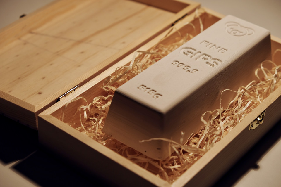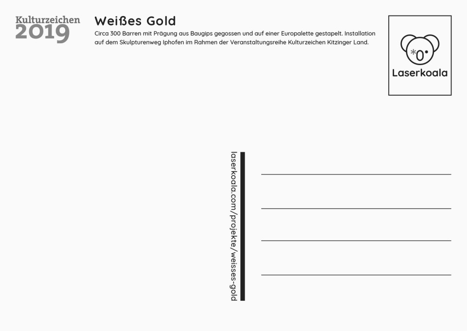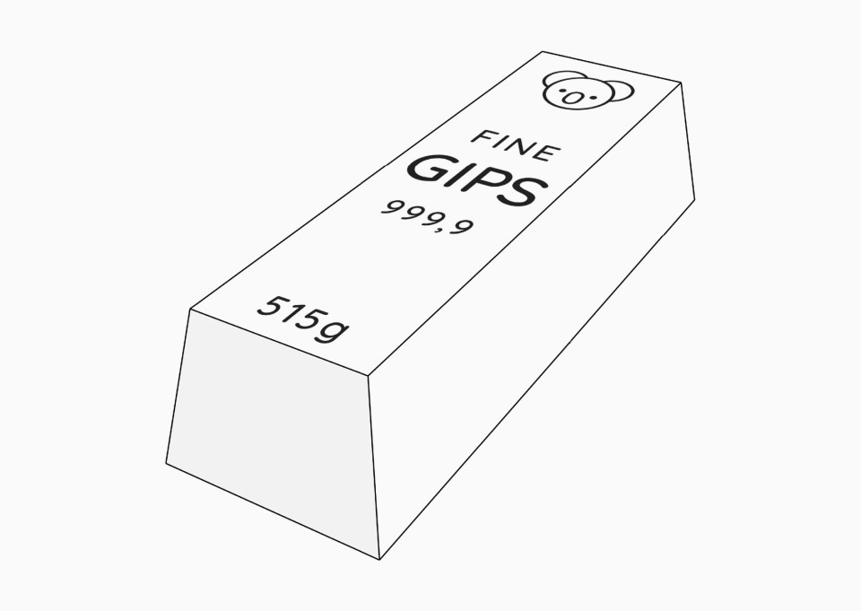 Es werden ca. 400 Barren aus Baugips gegossen und auf einer Europalette aufgestapelt. Die Barren erinnern in Form und Größe an handelsübliche Goldbarren. Durch die Umsetzung im Material Gips entsteht eine aufmerksamkeitsstarke Verfremdung, aber auch der Ortsbezug zu Iphofen, welches durch den Gipsabbau und die Verarbeitung stark geprägt ist. Das Kunstwerk positioniert sich im Spannungsfeld zwischen den wirtschaftlichen Vorteilen für die Region und den Nachteilen für Mensch und Natur.