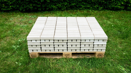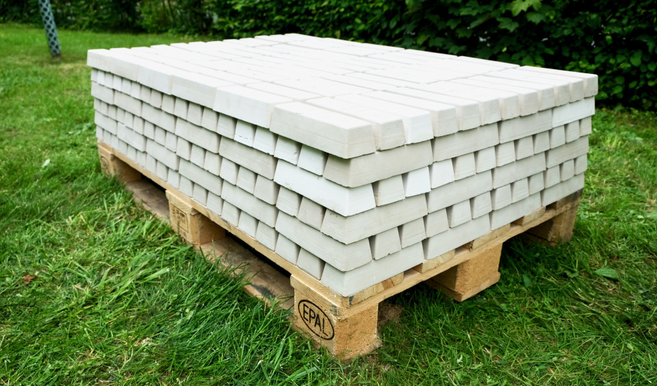 Entwurf: Europalette mit gestapelten Gipsbarren