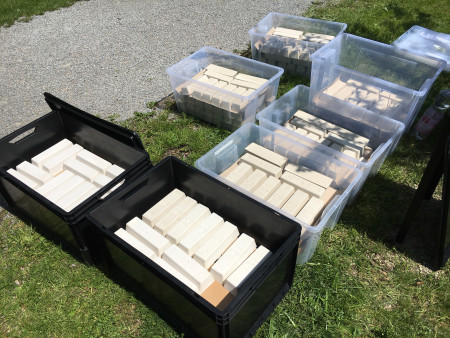 Die Barren werden für die Ausstellung auf einer Europalette aufgestapelt präsentiert und im Freien dem Verfall durch Witterung bewußt ausgesetzt.